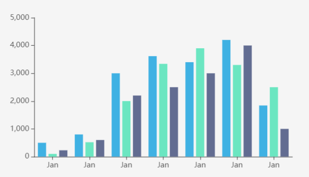pie charts, gauges, scatter charts, line charts, radar charts, liquidfill,